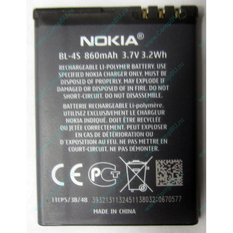Комплектация: телефон, батарея Nokia BL-4S, зарядное устройство Nokia AC-8, гарнитура Nokia WH-102, инструкция