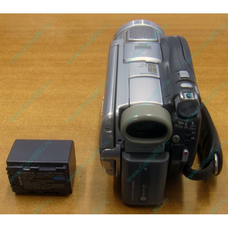 В комплекте идут: сама камера, две аккумуляторных батареи - Sony NP-FP60 (7.2V 7.2Wh) и Sony NP-FP71 (6.8V 12.2Wh), блок питания ("зарядка") Sony AC-L200, сумка-кофр.