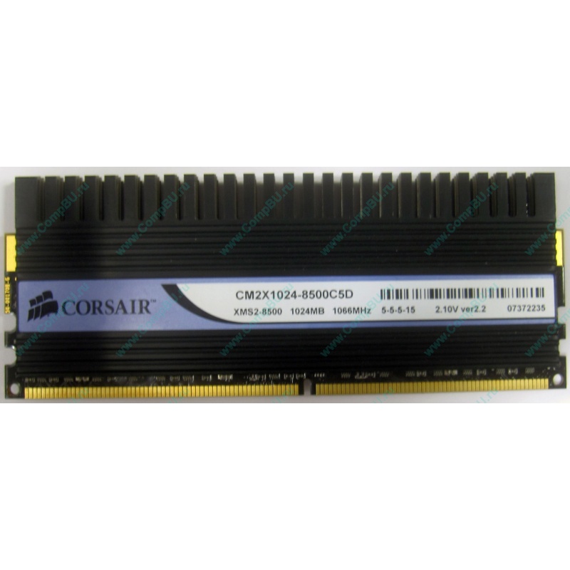 Два модуля памяти 1Gb DDR3 Corsair Dominator CM2X1024-8500C5D XMS2-8500 pc8500 (1066 MHz) с металлическим радиатором черного (темно-серого) цвета.