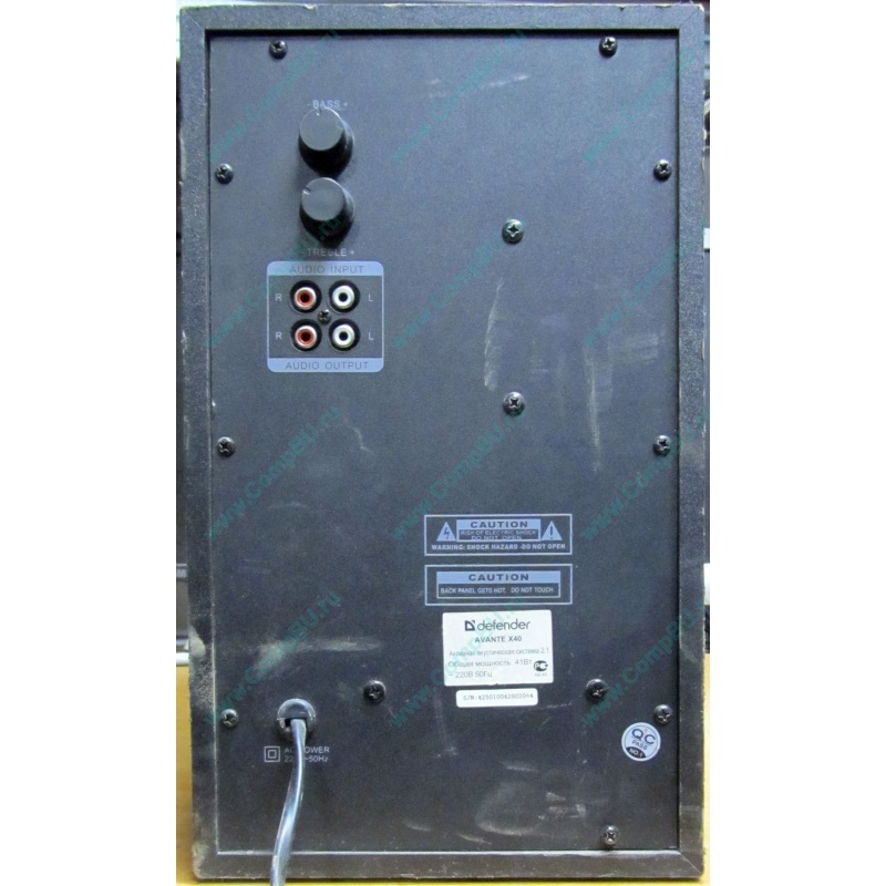 Б/У сабвуфер Defender AVANTE X40 2.1 (цвет чёрный). Продается БЕЗ КОЛОНОК (отсутствуют) - проверить не на чем. Скорее всего, рабочий (при включении слышен характерный низкочастотный щелчок; светится светодиод на морде). Продаётся без гарантии, как есть (если у Вас сгорел аналогичный сабвуфер - на запчасти самое то!).