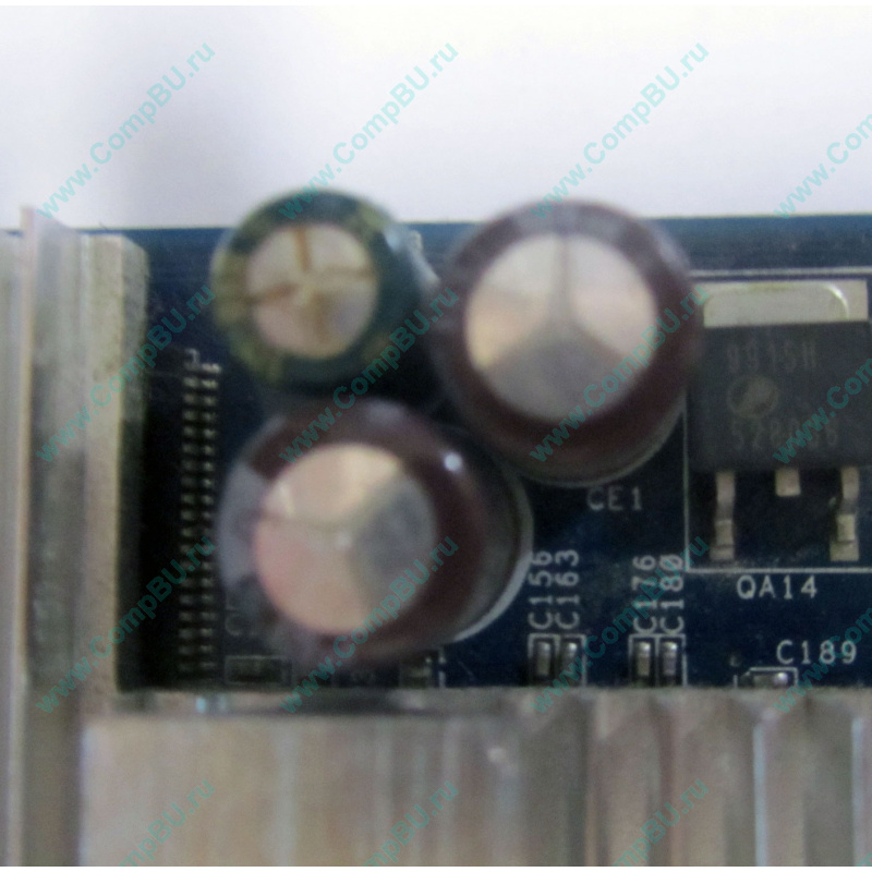 Есть дефект: нескольких слегка вздутых маленьких конденсаторов (видно на соответствующих фотографиях). При этом видеокарта проходит тест производительности в Windows 7.